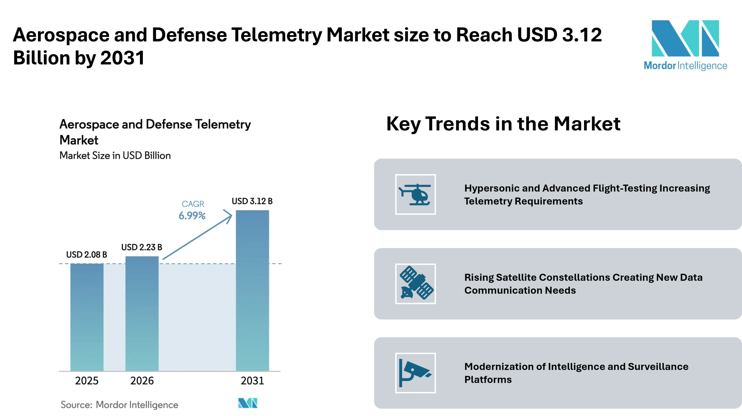 Home Press ReleasesAerospace and Defense Telemetry Market size to Reach USD 3.12 Billion by 2031, Driven by Hypersonic Programs, Satellite Constellations, and ISR Platform Modernization – Mordor Intelligence