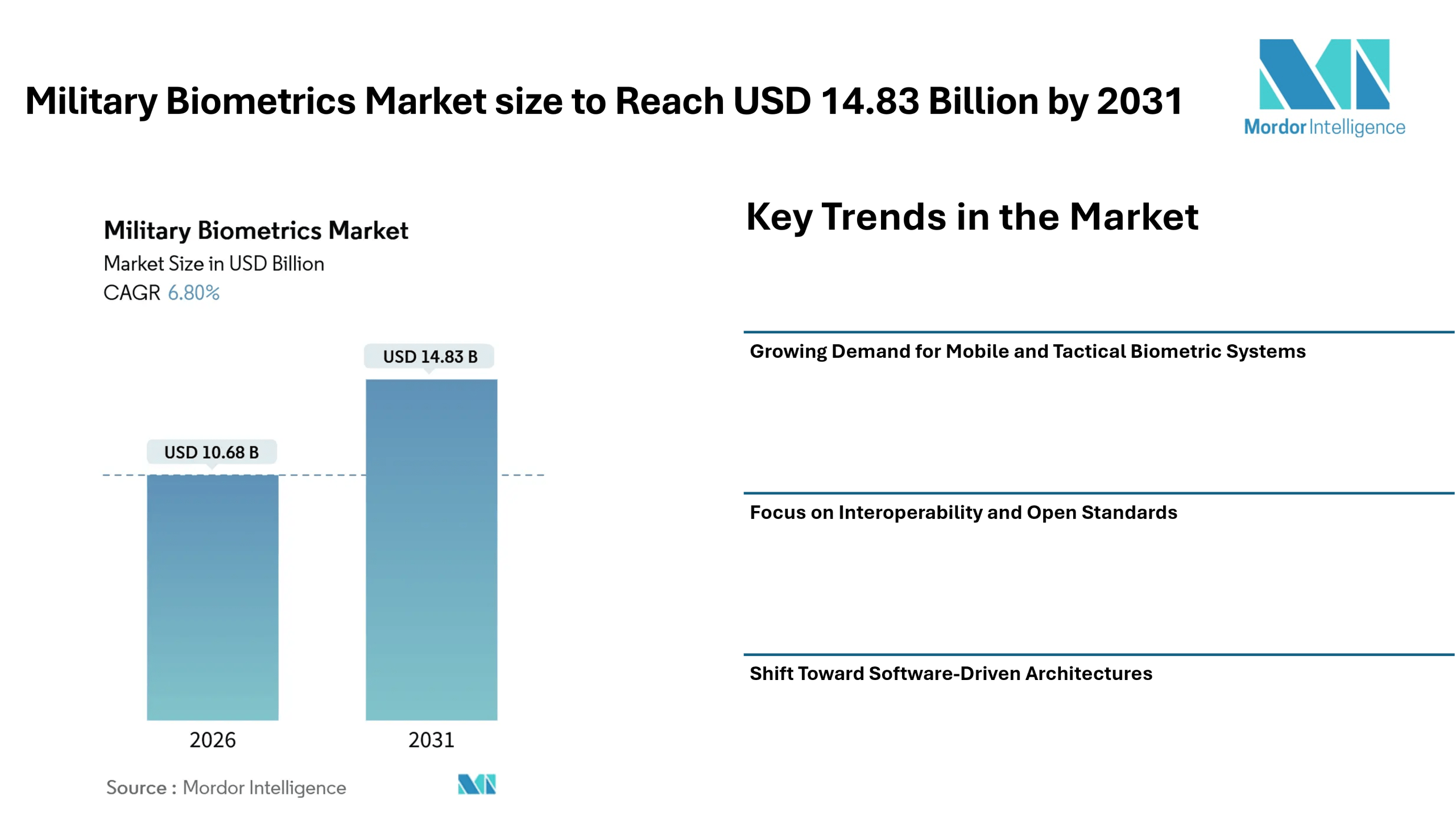 Home Press ReleasesMilitary Biometrics Market size to Reach USD 14.83 Billion by 2031 Driven by Rising Border Security Needs and Mobile Tactical Authentication Trends – Mordor Intelligence