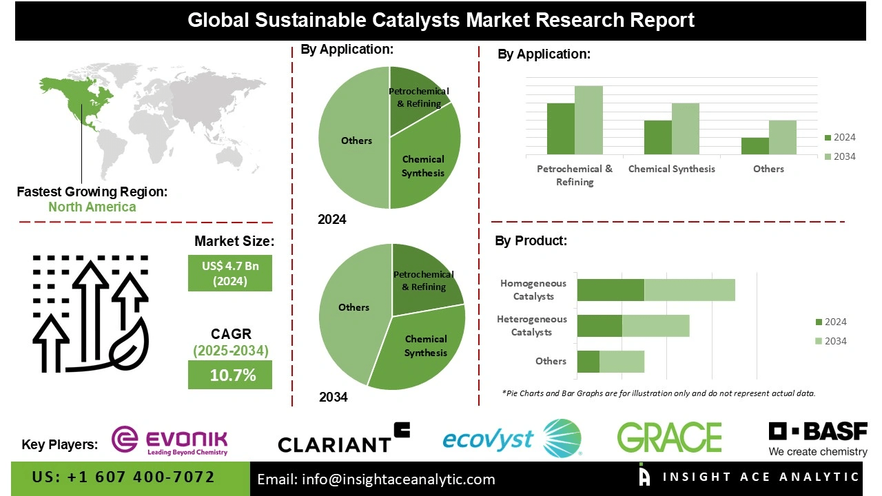 InsightAce Analytic Pvt. Ltd. announces the release of a market assessment report on the “Global Sustainable Catalysts Market Size, Share & Trends Analysis Report By Product Type (Homogeneous, Heterogeneous, and Biocatalysts/Enzymatic Catalysts), Application (Environmental Catalysis, Petrochemical & Refining, Renewable Energy, Chemical Synthesis, and Polymer & Plastic Recycling),- Market Outlook And Industry Analysis 2034″